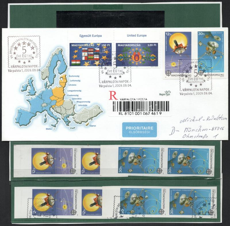 Leírás: 1991 Europa CEPT, Európa az űrben postatiszta és pecsételt vágott sor párokban + vágott sor elsőbbségi ajánlott levélen RR