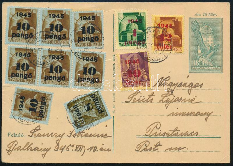1945 (5. díjszabás) Levelezőlap 11 db bélyeggel
