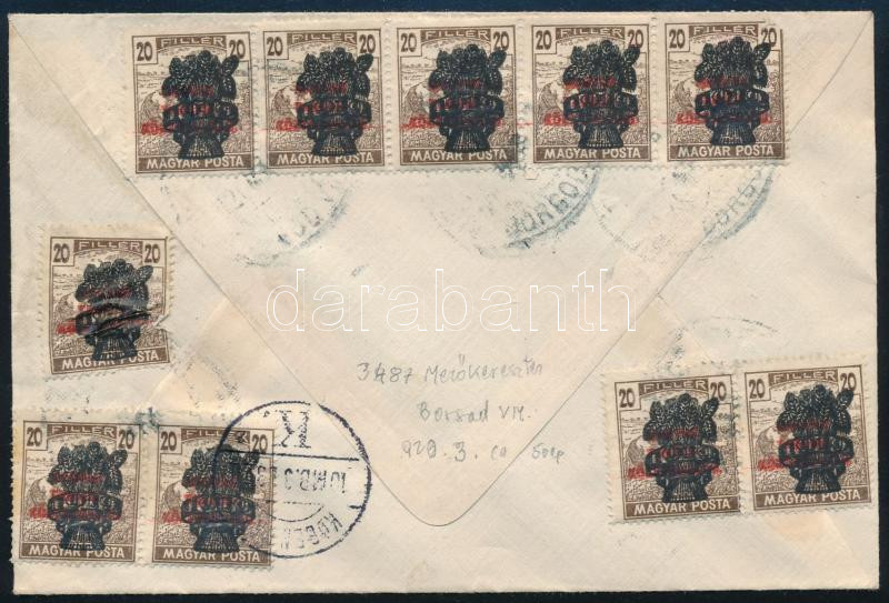 Leírás: 1920 Levél 10 db Búzakalász 20f bélyeggel Dániába küldve