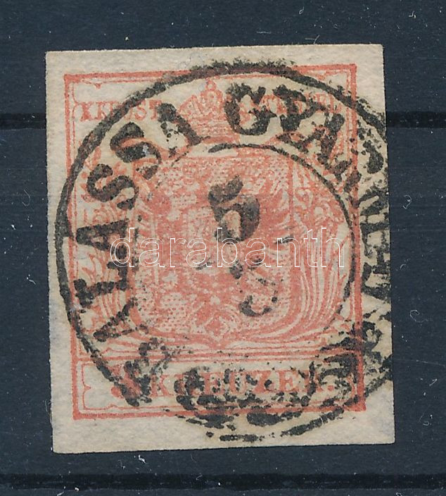 Leírás: 1850 3kr HP III vízjeles ívszéli nyomat "BALASSA GYARMAT"