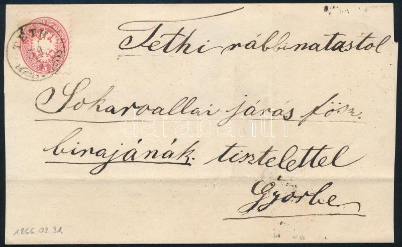 Leírás: 1866 5kr levélen "TÉTH" - Győr