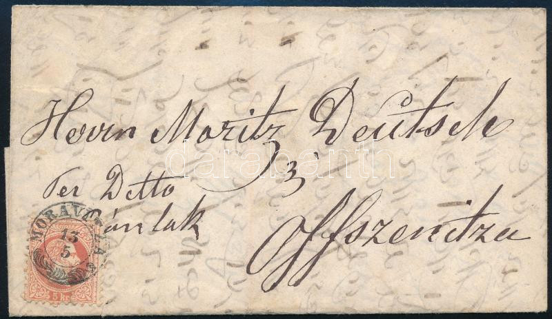 1869 5kr levélen / on cover "MORAVITZA" https://www.darabanth.com/hu/510-Gyorsarveres/510.0/Magyar-filatelia-es-postatortenet/Az-1867-es-kiadas~25/1869-5kr-levelen-on-cover-MORAVITZA~II3097705