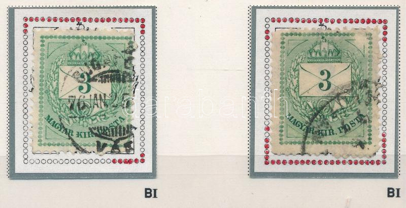 Leírás: 1874 2 db 3kr durva gyöngyjavítással (ex Orbán, Sebestyén aranyérmes kiállítási anyagból)