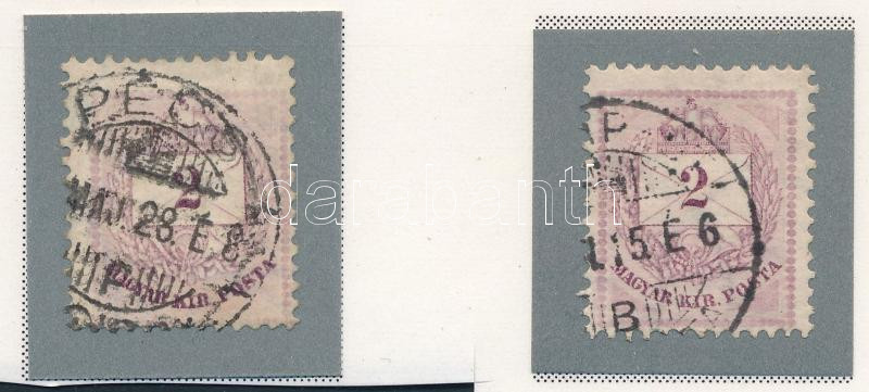 Leírás: 1881 2 db 2kr vésésjavítással (ex Orbán, Sebestyén aranyérmes kiállítási anyagból)