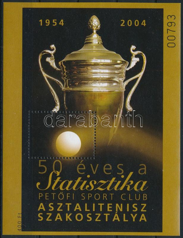 2004 50 éves a Statisztika Petőfi Sport Club Asztalitenisz Szakosztály... https://www.darabanth.com/hu/510-Gyorsarveres/510.0/Magyar-filatelia-es-postatortenet/Emlekivek~61/2004-50-eves-a-Statisztika-Petofi-Sport-Club-Asztalitenisz-Szakosztalya-emlekiv~II3429613