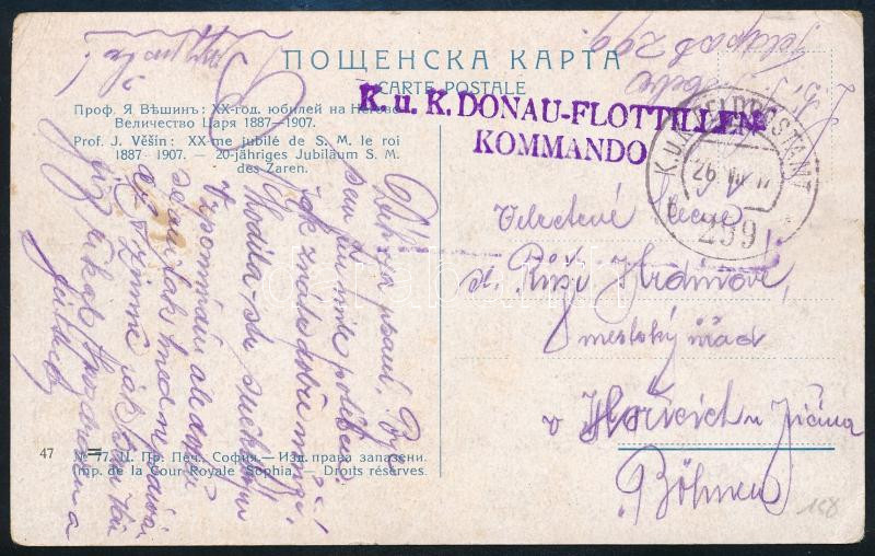 Leírás: 1917 Tábori posta képeslap "K.u.K. FELDPOSTAMT / b 299" , "K.u.K. DONAU-FLOTTILLEN / KOMMANDO"