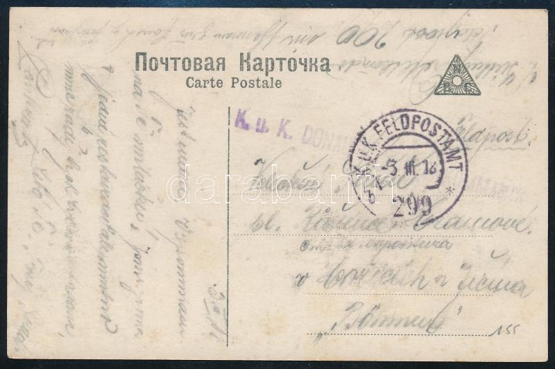 Leírás: 1918 Tábori posta képeslap "K.u.K. FELDPOSTAMT / b 299" , "K.u.K. DONAU-FLOTTILLEN KOMMANDO"