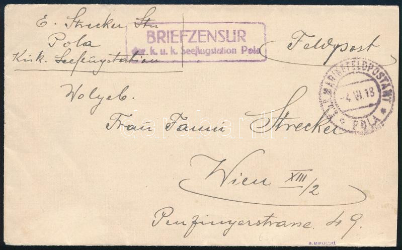 Leírás: 1918 Tábori posta levél "K.u.k. Seeflugstation Pola"