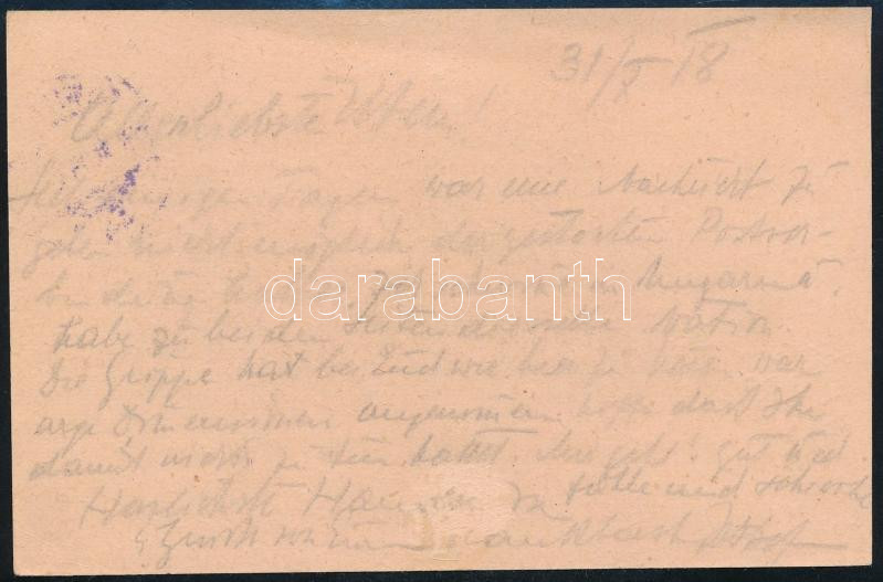 1918 Tábori posta levelezőlap Bécsbe küldve "S.M. Spitalschiff Erzh. Franz Ferdinand" , "ERCS" postai bélyegzéssel egy nappal azelőtt, hogy a dunaflotille levonta a k.u.k. harci zászlaját Budapesten