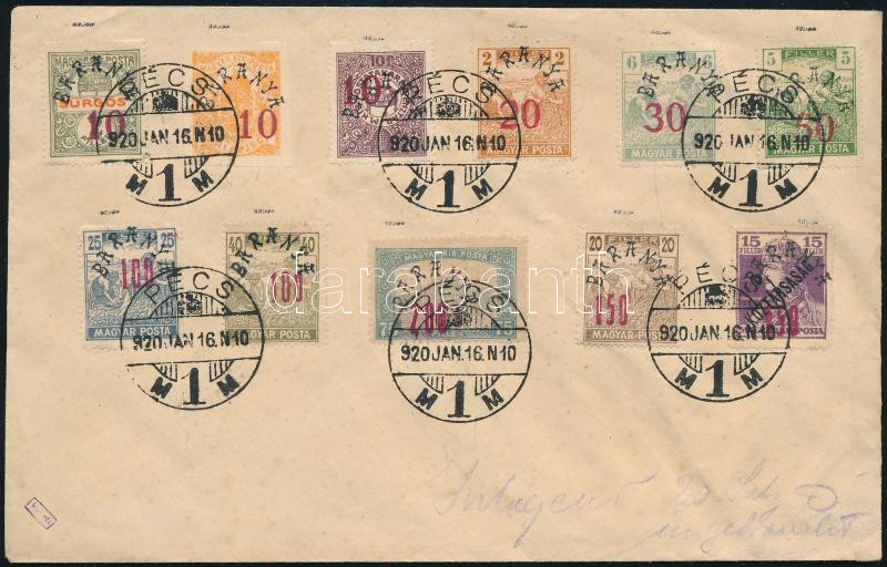 Leírás: 1920 Levél 11 db Baranya II. bélyeggel, Bodor vizsgálójellel "PÉCS"