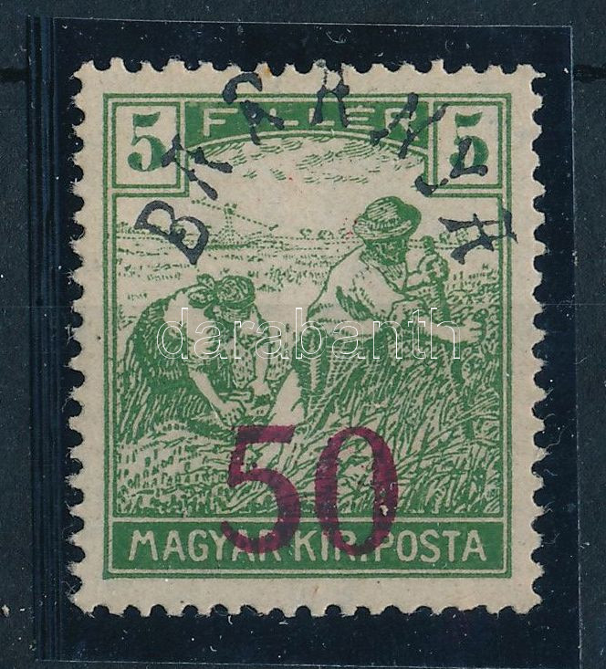 Leírás: Baranya II. 1919 Arató 50/5f eltolódott felülnyomással, Bodor vizsgálójellel