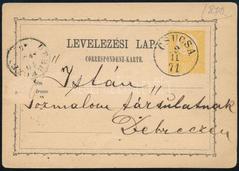 Leírás: 1871 2kr díjjegyes levelezőlap "CSUCSA" - "DEBRECZEN" (Gudlin 250 p)