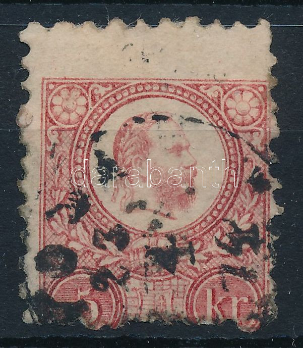Leírás: 1871 Réznyomat 5kr ívszélről származó bélyeg erősen képbe fogazva