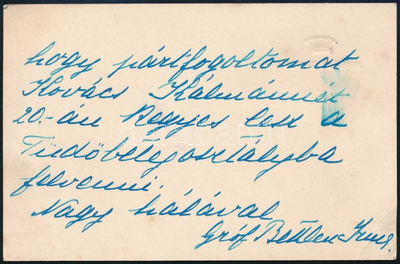 1918 Gróf Bethlen Irma (1844-1932) írt üdvözlő sorok https://www.darabanth.com/hu/510-Gyorsarveres/510.0/Mutargy-papirregiseg-egyeb/Alairas~806/1918-Grof-Bethlen-Irma-1844-1932-irt-udvozlo-sorok~II3449231