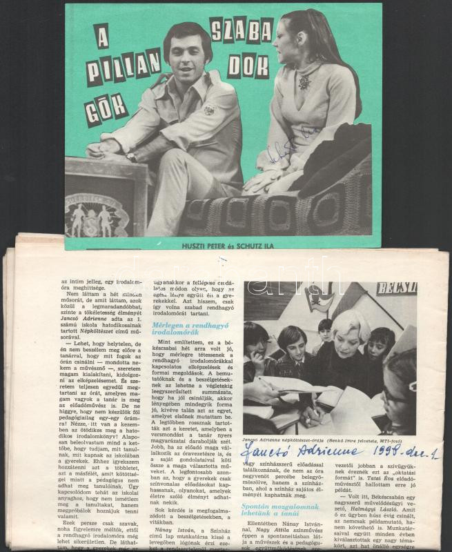 Leírás: Békés Itala, Perczel Zita, Muráti Lili, Schütz Ila, Szemes Mari, Jancsó Adrienne aláírása újságkivágásokon