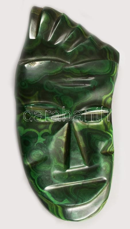Leírás: Malachit arc, akasztóval, 12x6 cm