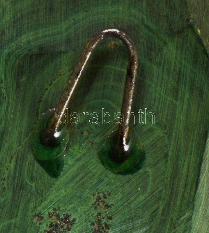 Leírás: Malachit arc, akasztóval, 9,5x6 cm