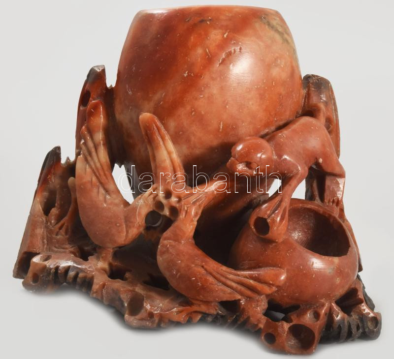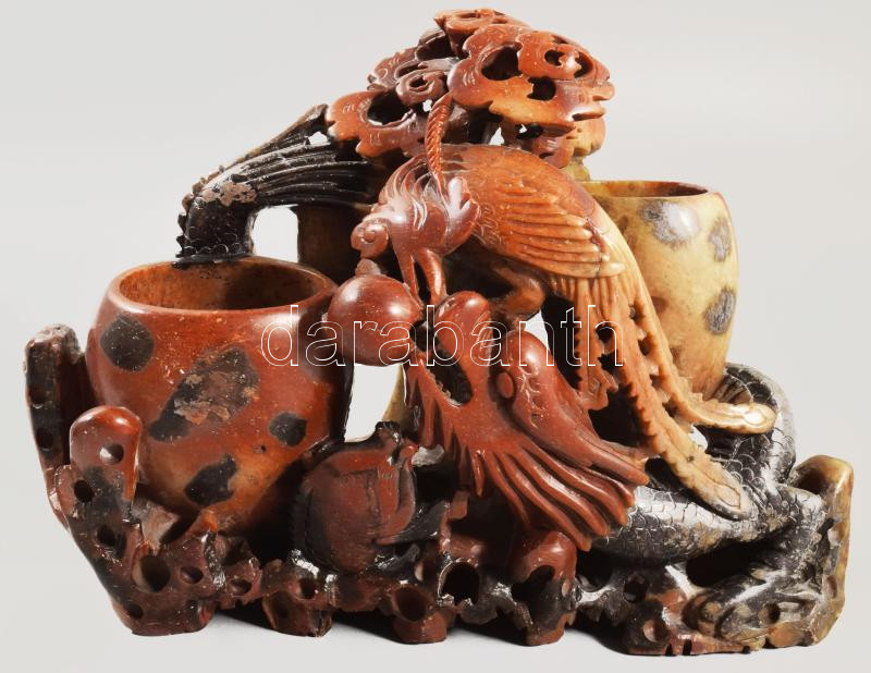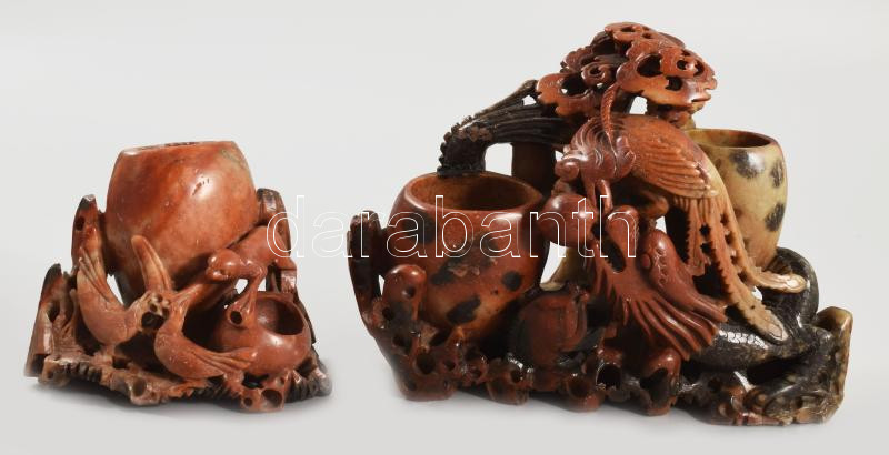 Leírás: 2 db faragott zsírkő váza, állatos díszítésekkel, hibátlan 20x17 cm, 12x10 cm