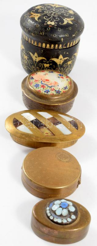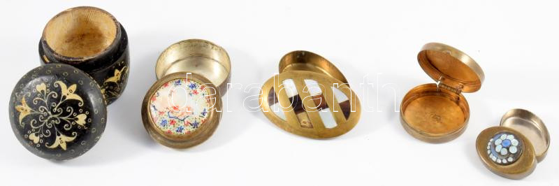 5 darab ékszeres dobozka, zömmel réz