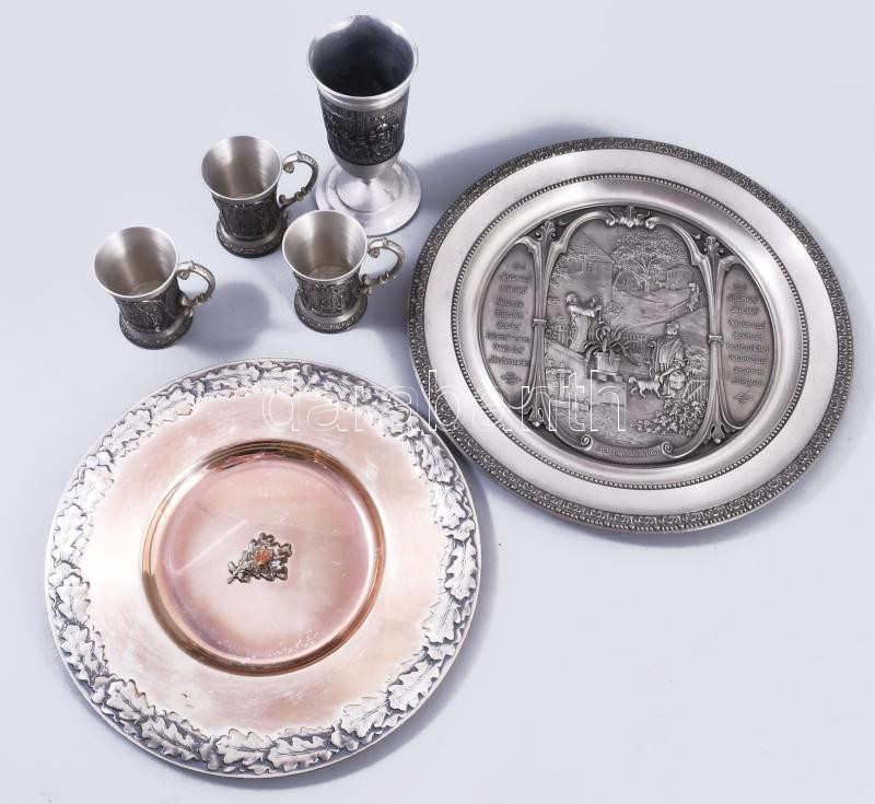 6 darab fém tárgy, tálak, poharak, d: 25 cm alatt