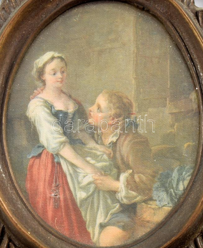 Leírás: Díszes bronz akasztható keret, 17x11,5 cm