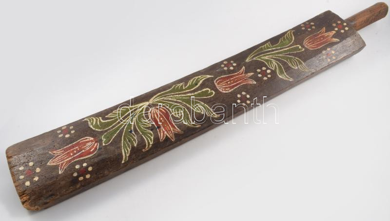 Leírás: Mángorló. cca 19. sz. vége, magyar, kopással, hátoldalán festéssel, h: 77 cm