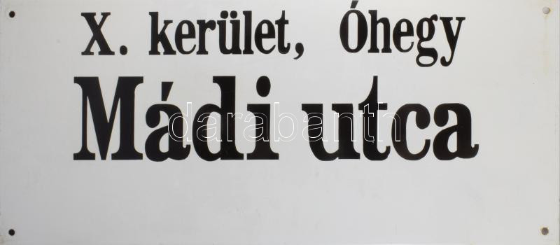 cca 1980/90 Nagyméretű zománcozott fém utcatábla, "X. kerület, Óh... https://www.darabanth.com/hu/510-Gyorsarveres/510.0/Mutargy-papirregiseg-egyeb/Bolhapiac~795/cca-198090-Nagymeretu-zomancozott-fem-utcatabla-X-kerulet-Ohegy-Madi-utca-felirattal-~II3452002