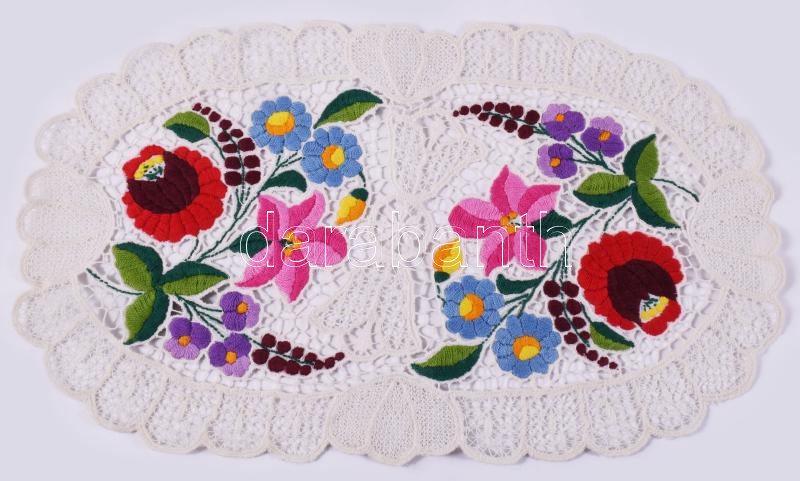 Leírás: Kalocsai Richelieu hímzéses terítő, 40x23 cm