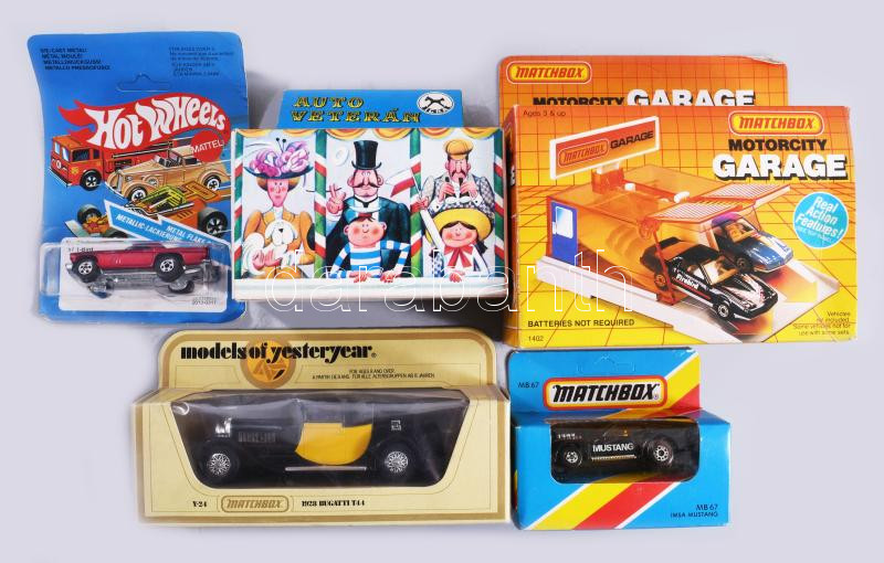 Leírás: Auf Achse német kamionos társasjáték + 5 darab játékautó, közte Matchbox Motorcity Garage, MB 67 Mustang, stb., saját dobozukban.
