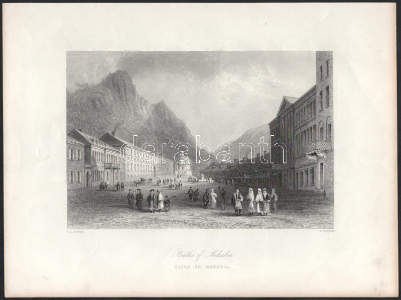 Bartlett, William Henry (1809-1954) - Benjamin, E.: Mehádiai fürdők, későbbi nevén Herkulesfürdő (Baths of Mehadia). Acélmetszet, papír, jelzett a metszeten, 12x18 cm