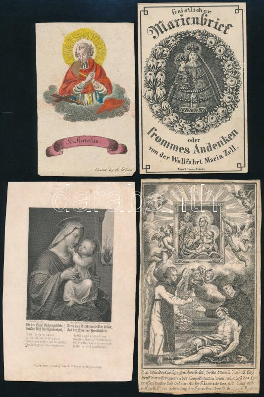 cca XIX. század, 4 db szentkép, vallási témájú metszet, 10x6,5 cm és 1... https://www.darabanth.com/hu/510-Gyorsarveres/510.0/Mutargy-papirregiseg-egyeb/Metszetek~805/cca-XIX-szazad-4-db-szentkep-vallasi-temaju-metszet-10x6-5-cm-es-14x9-cm-kozott~II3451231