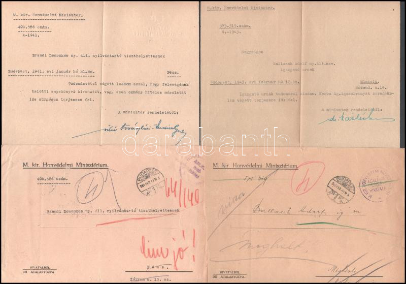 1939-1943 A M. Kir. Honvédelmi Minisztérium levelezése hivatali ügyekb... https://www.darabanth.com/hu/510-Gyorsarveres/510.0/Mutargy-papirregiseg-egyeb/Militaria~814/1939-1943-A-M-Kir-Honvedelmi-Miniszterium-levelezese-hivatali-ugyekben-5-db-alairassal-ell~II3431252