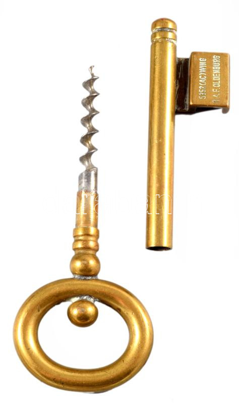 Leírás: 1945-46 Németországot megszálló brit Royal Air Force bronz kulcs alakú dugóhúzó, jelzett, h: 16 cm