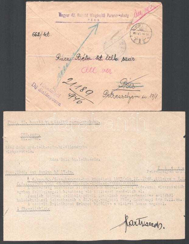 1946-1947 Honvédelmi minisztériumi, tiszti levelezések, 7 db, különfél... https://www.darabanth.com/hu/510-Gyorsarveres/510.0/Mutargy-papirregiseg-egyeb/Militaria~814/1946-1947-Honvedelmi-miniszteriumi-tiszti-levelezesek-7-db-kulonfele-ugyekben-kozte-Bat~II3431317