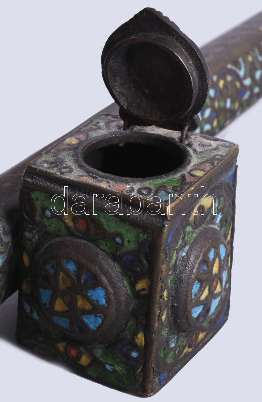 Leírás: Qalamdan divit oszmán úti tintatartó, cca 20. sz. eleje,lezárója hiányzik, h: 21,5 cm
