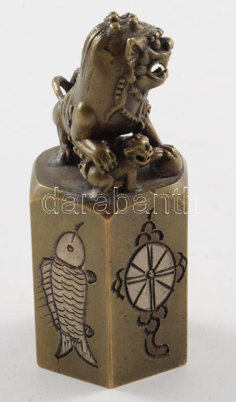 Sárkányos pecsétnyomó, bronz, kínai. 6,5 cm
