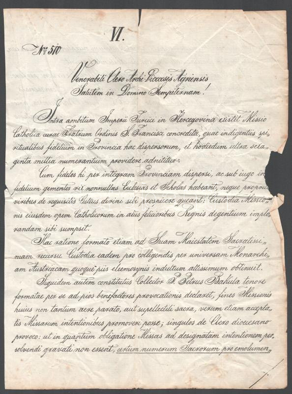 Leírás: 1863 Eger, Bartakovics Béla egri érseknek az egri főegyházmegye klérusához címzett körlevele, sokszorosított, latin nyelven, lapszéli sérülésekkel