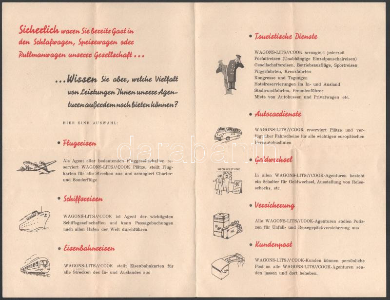 Leírás: cca 1930-1940 Wagons-Lits Cook nemzetközi vasúti hálókocsi és európai nagy expresszvonat-társaság német nyelvű prospektusa