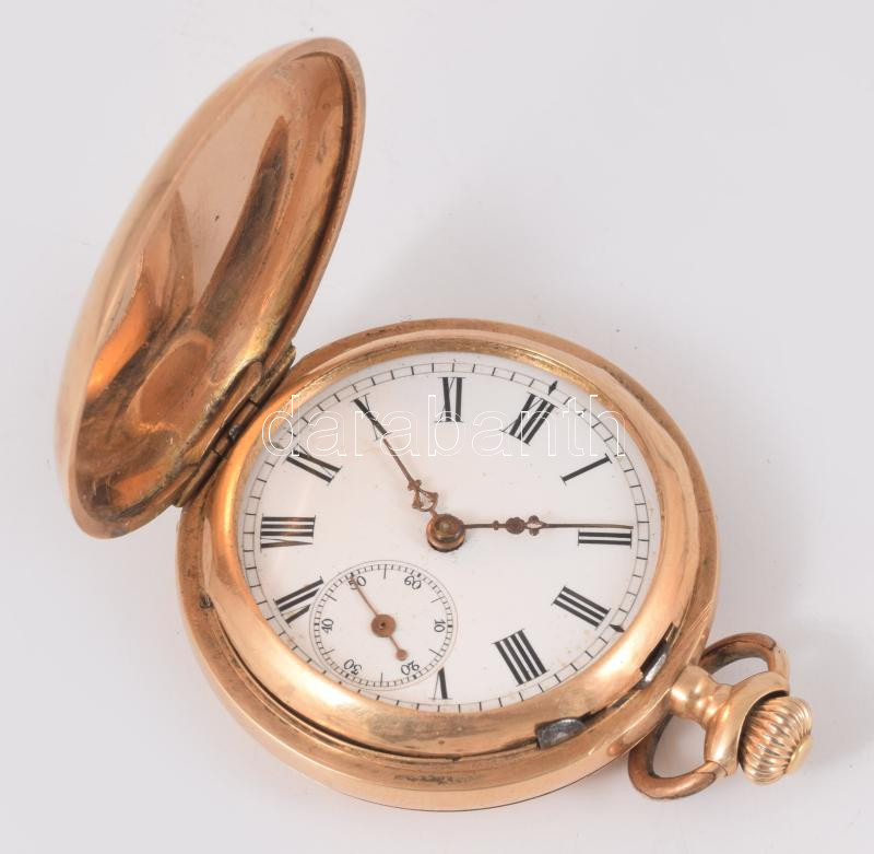 Leírás: Arany (Au) tokos zsebóra, 14k, jelzett, d: 3,5cm, bruttó 35,7g