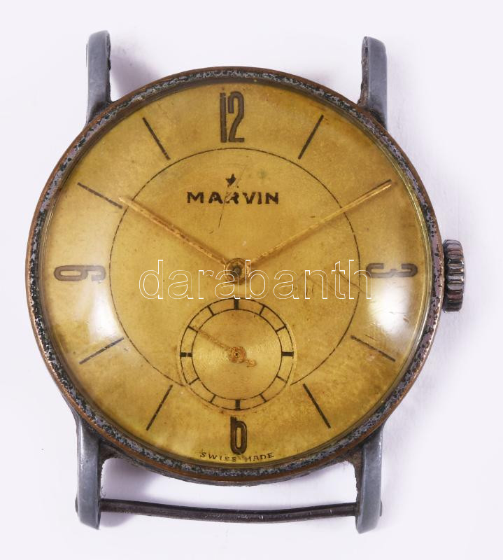 Leírás: Marvin karóra mechanikus, kopott, nem működik, d: 32mm