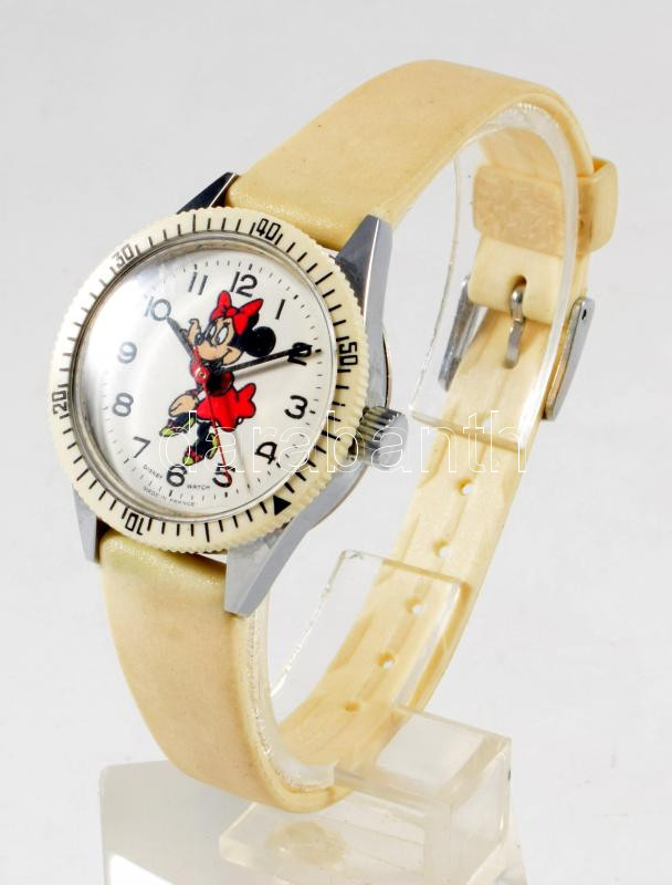 Leírás: Walt Disney óra, francia, mechanikus, működik, d: 3 cm
