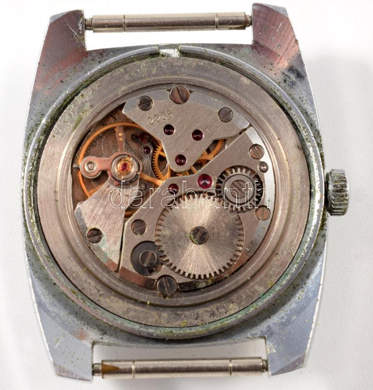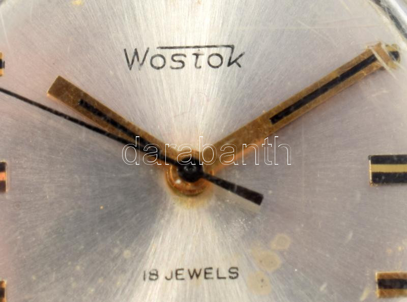 Leírás: Wostok 18 köves karóra, szíj nélkül, működik, karcokkal, 40x32 mm