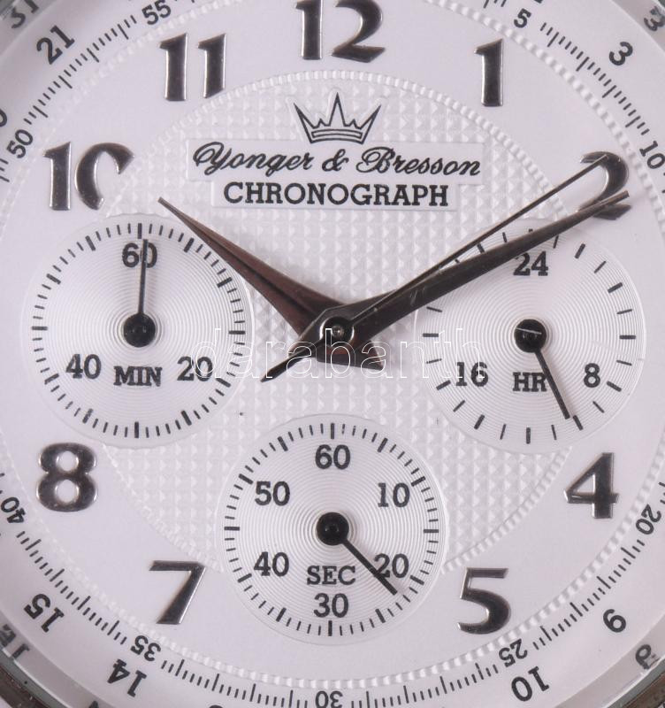 Leírás: Yonger & Bresson Chronograph karóra, kvarc, bőr szíjjal, d: 4 cm
