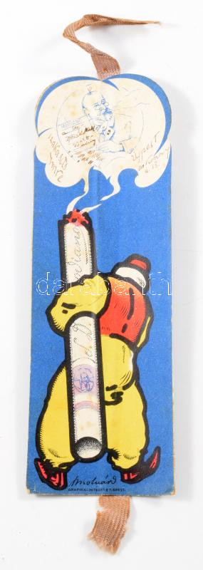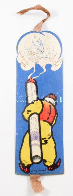 Leírás: cca 1930-1940 Modiano cigaretta reklámos könyvjelző, kétoldalas, kitöltött, h: 16 cm