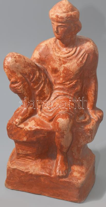 Leírás: Medgyessy Ferenc (Debrecen, 1881 ? Budapest, 1958): Pihenő legény. 1960, engóbozott kerámia, jelzett, kopással, m: 22,5 cm
