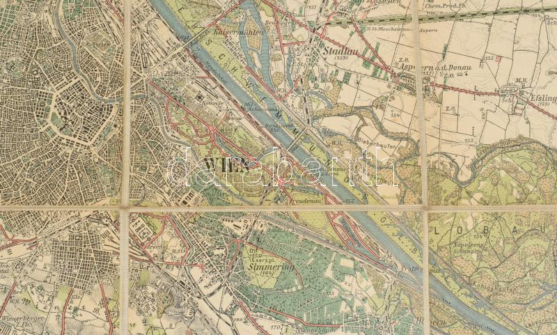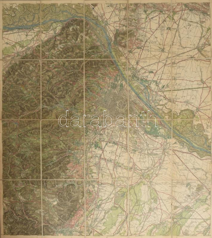 Leírás: Umgebungkarte von Wien, 1:75 000, kiadja: R. Lechner, vászontérkép, 60×52 cm