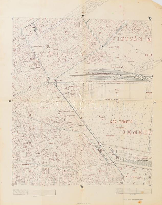 Leírás: cca 1904 Erzsébetváros, Józsefváros és környékének térképe. Bp. Székesfőv. nyomda, 1:5000 45x59 cm Hajtva.