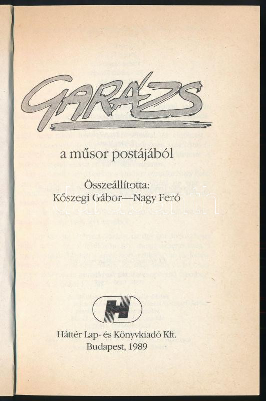 Kőszegi Gábor-Nagy Feró: Garázs a műsor postájából. Nagy Feró által DEDIKÁLT! Bp., 1989, Háttér Lap- és Könyvkiadó Kft. Kiadói papírkötés, jó állapotban.