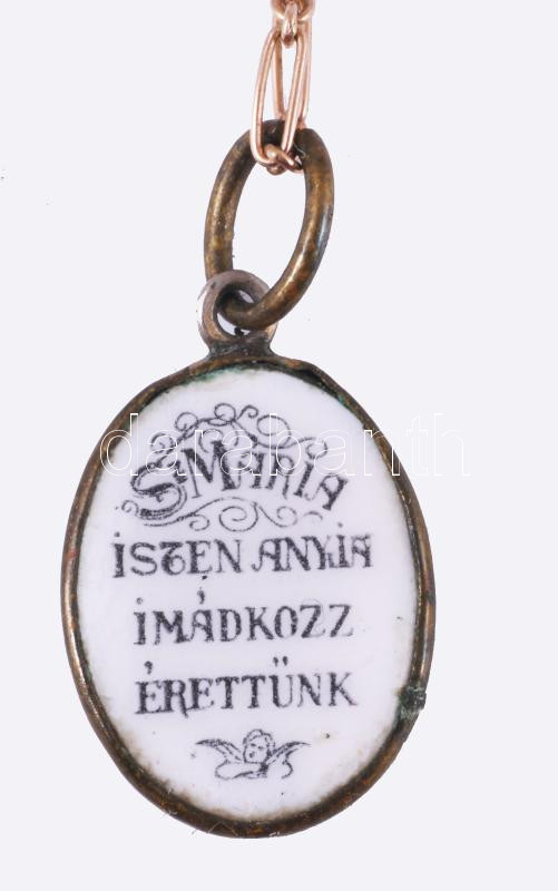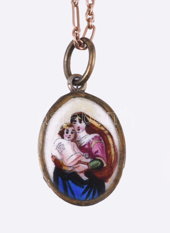 Leírás: 14K arany (Au) nyaklánc, és porcelán medállal, jelzett nettó 1,8 g