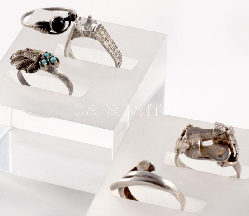 Leírás: 5 darab ezüst (Ag) gyűrű, kő berakásokkal, m: 53-57, bruttó 12,8g
